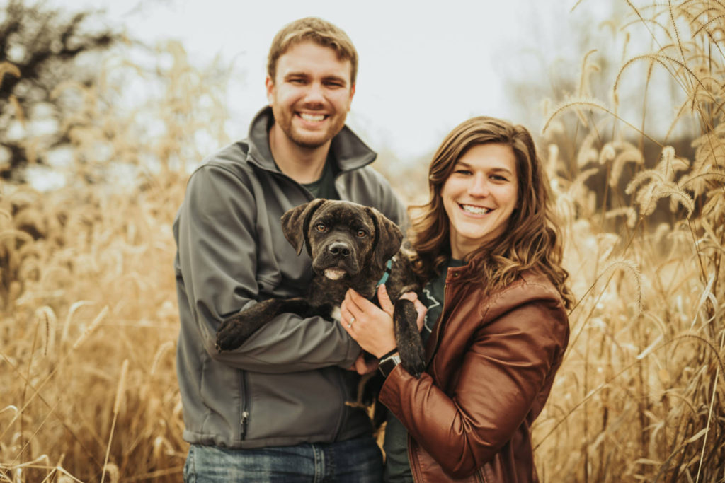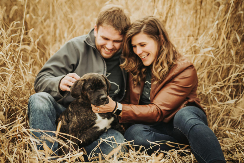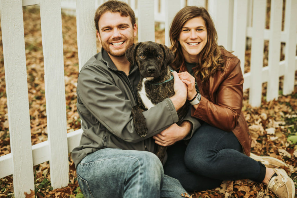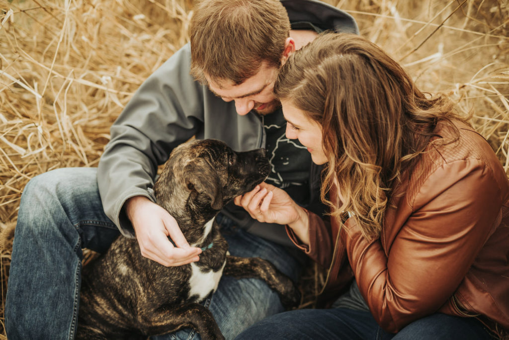 Amanda has more love for dogs than anyone I’ve ever known. It’s always been a dream of hers to rescue a puppy, and that dream finally came true for her when they rescued Kahn. So obviously, the little addition to their family had to be documented, and what better time to do that than during engagement photos! Kahn was so well behaved during our shoot. I always recommend to clients to bring someone extra along to watch the dog during the shoot, so we can all just focus on the love and photos. Kahn barely even needed a baby sitter though! We let him run around, and he always listened when we called him back. He was very excited, so it was hard to get him to sit still for formal photos, but the natural candid ones are always the best ones anyway.