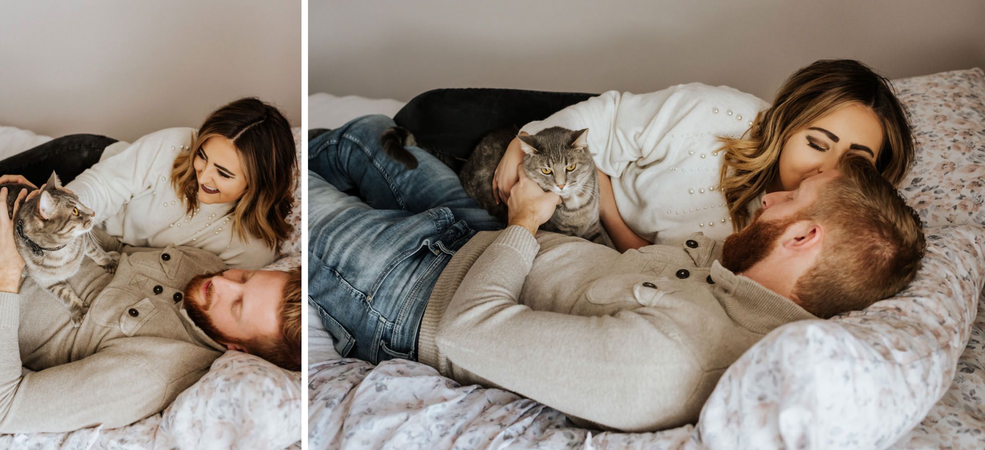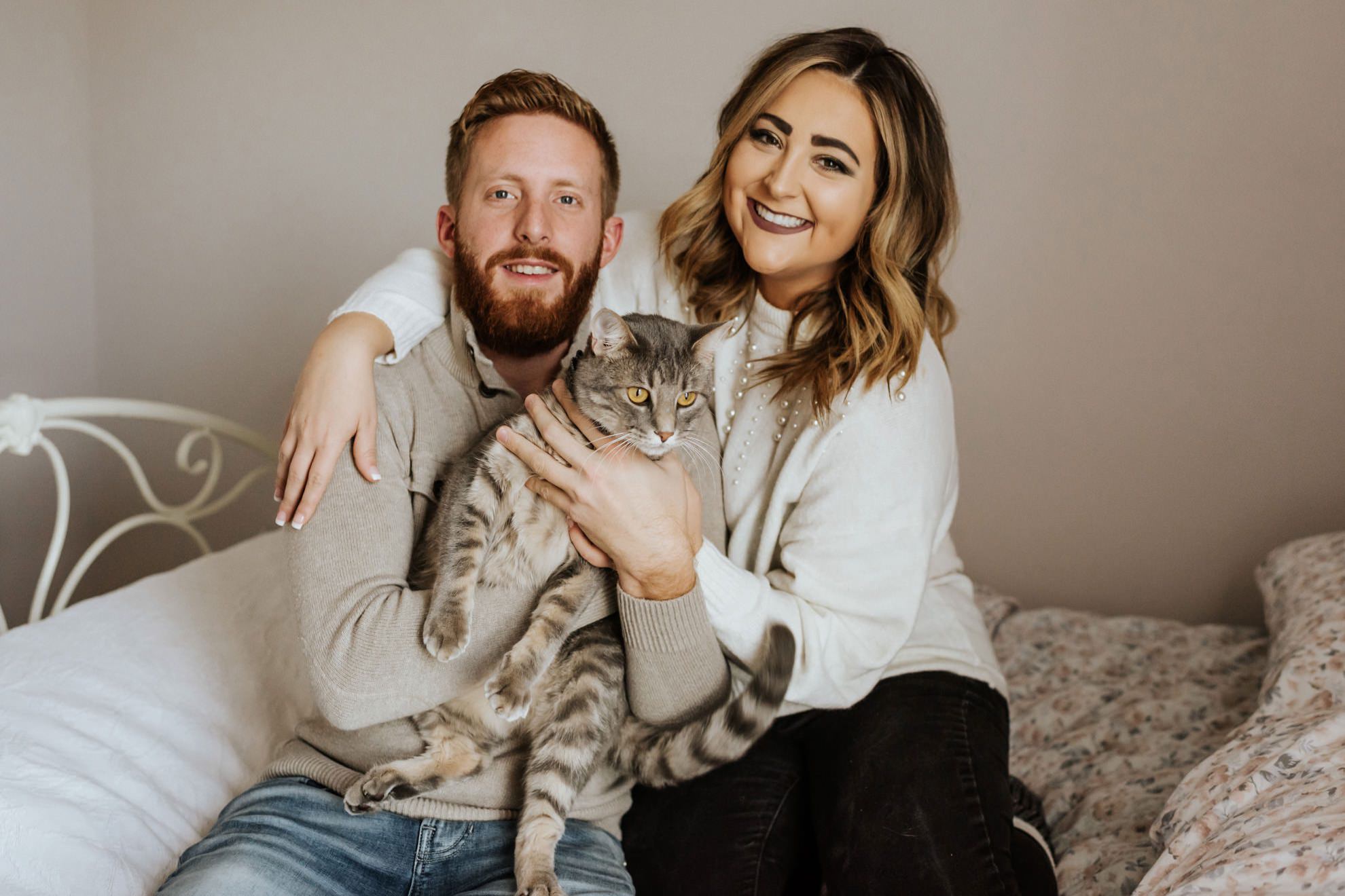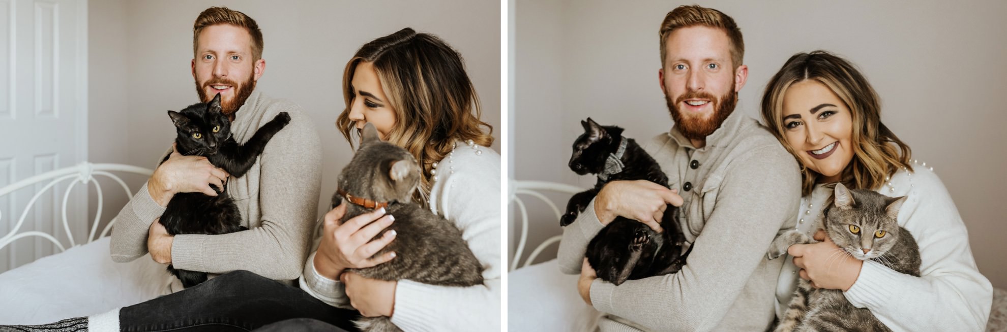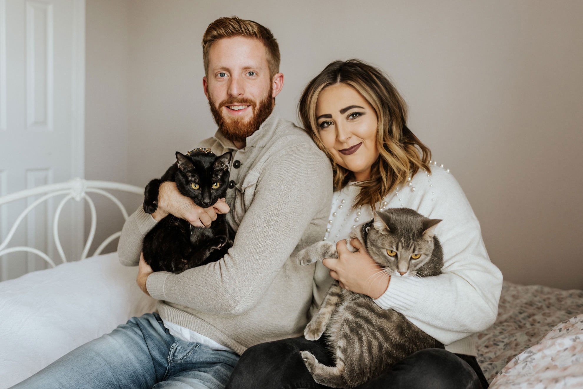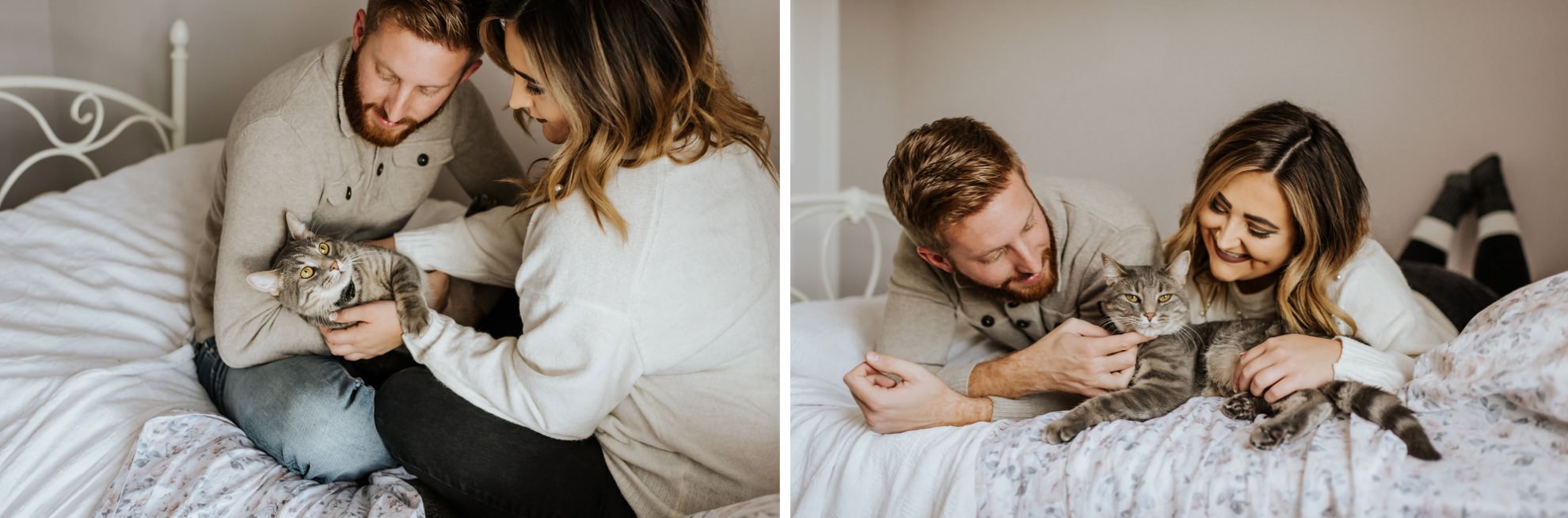 Cassie & Drew’s yearly session with their fur babies! Cute & cozy cat photos, intimate bedroom photos, and fun sunset hangs right outside their home. Photographing people in their natural environment is my favorite thing ever!