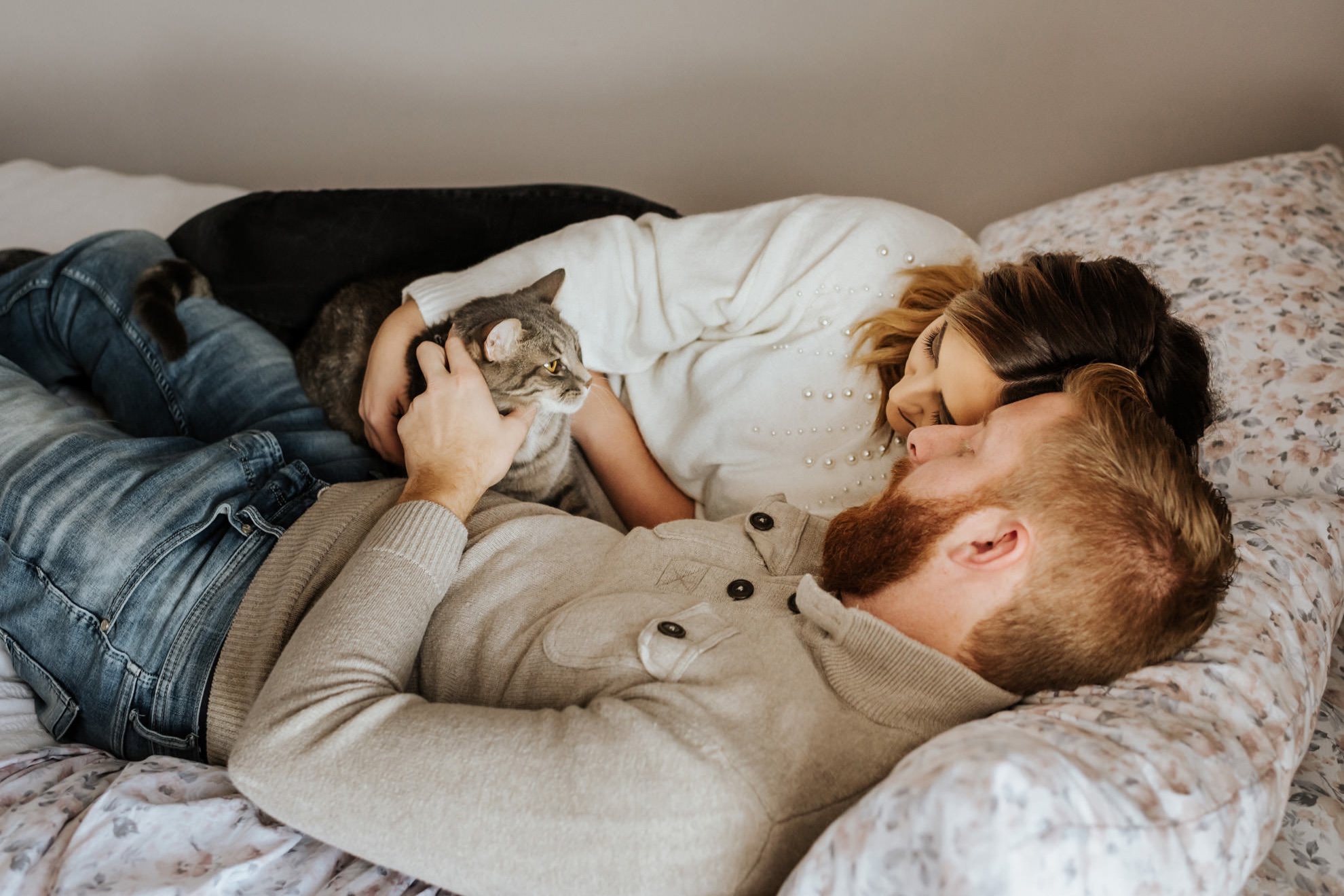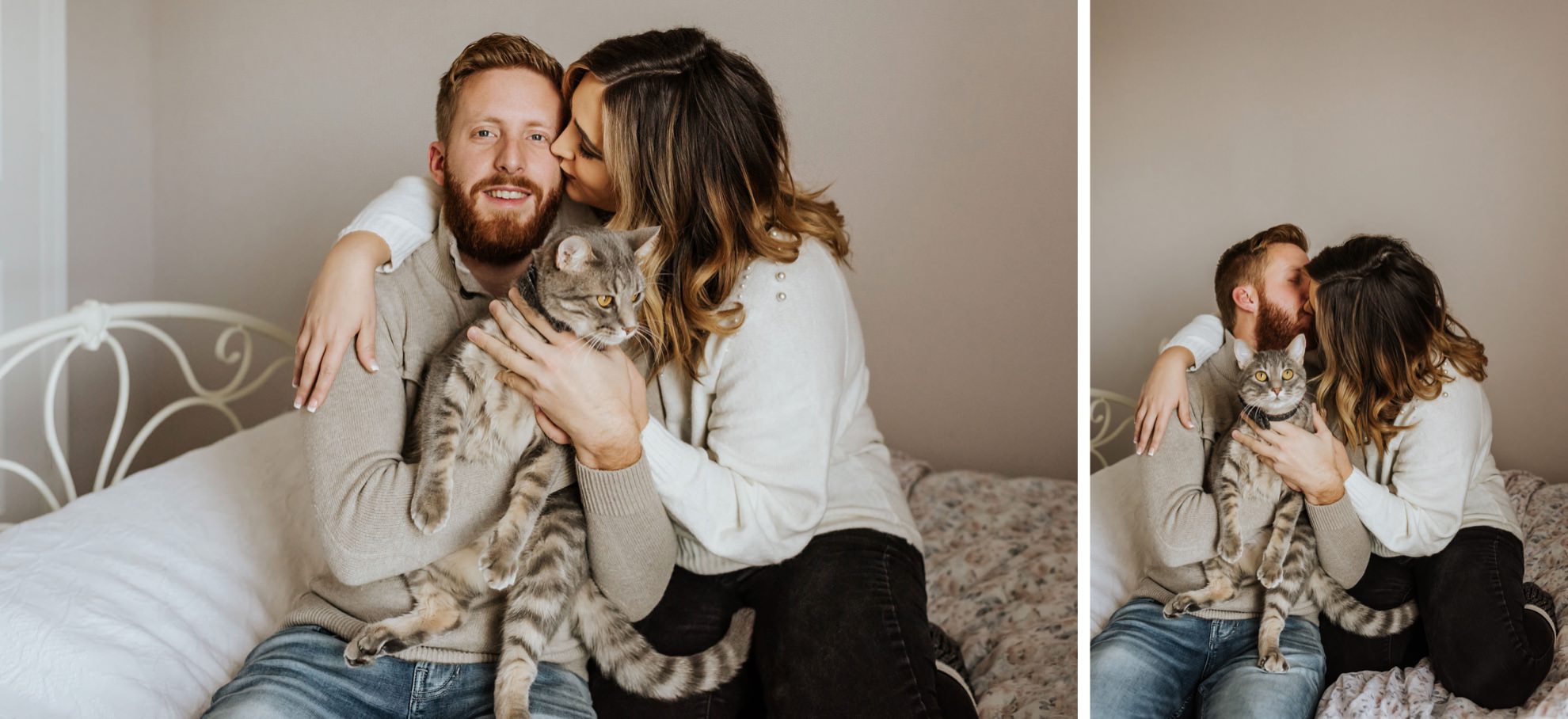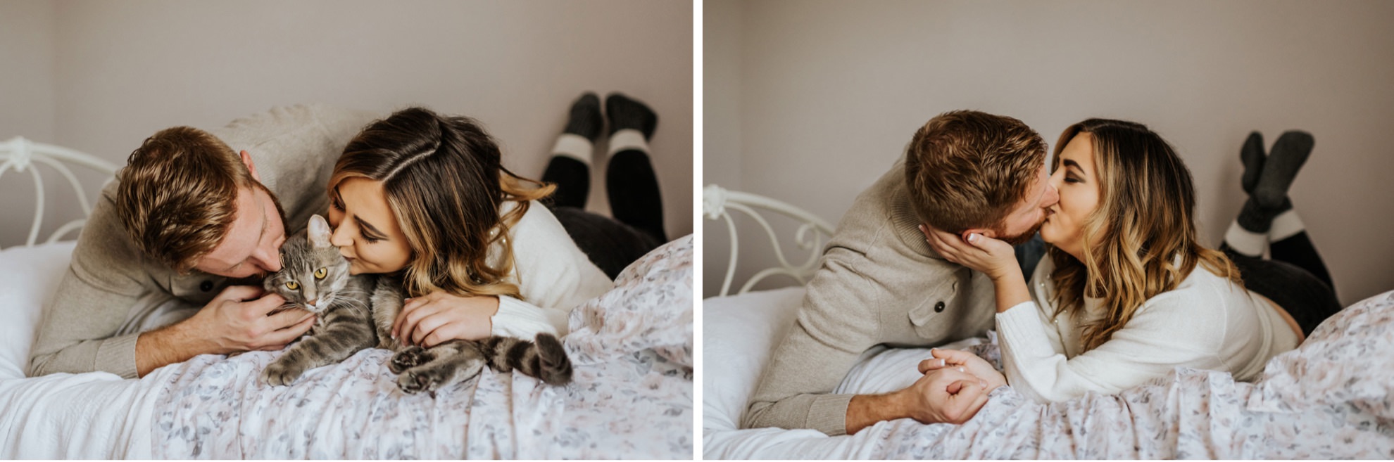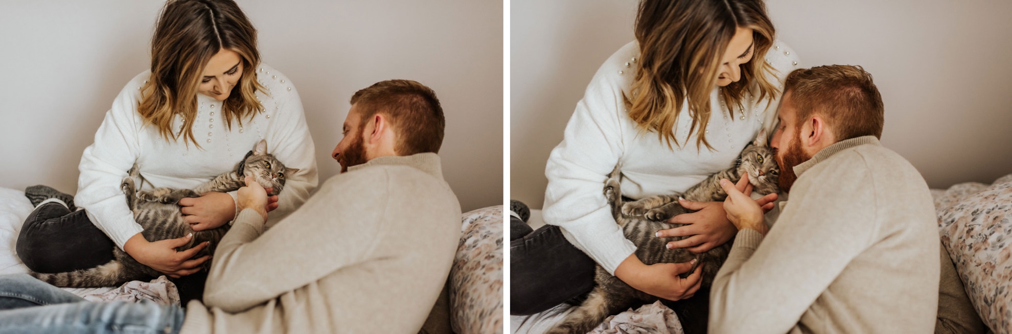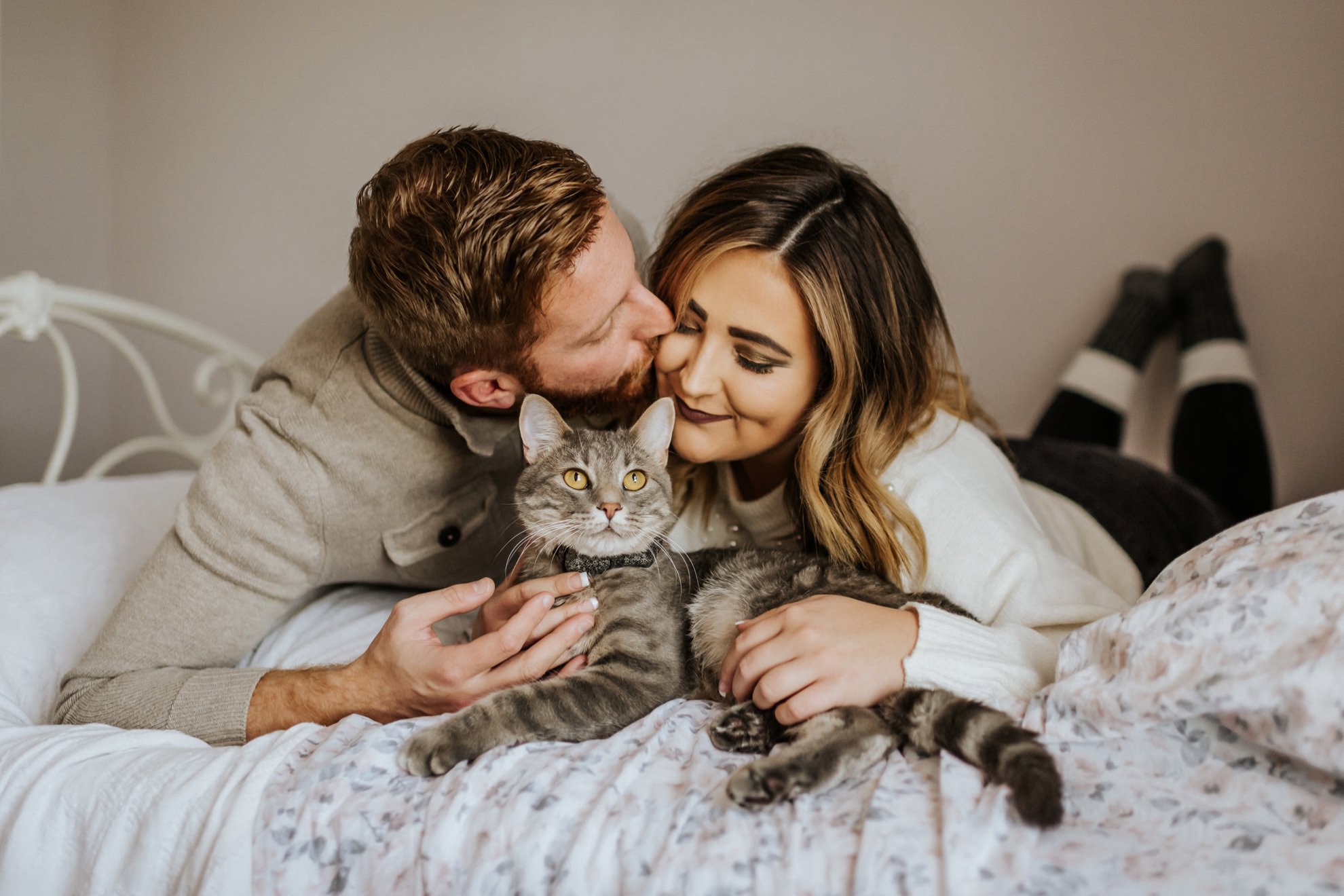 Cassie & Drew’s yearly session with their fur babies! Cute & cozy cat photos, intimate bedroom photos, and fun sunset hangs right outside their home. Photographing people in their natural environment is my favorite thing ever!
