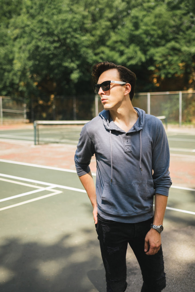 Last month I had the opportunity to shoot with Grayson, a model based here in Kansas City. I found his page on The Hub, and contacted him through Instagram. (Isn’t social media awesome?!) He was super excited to set up a shoot with me, and I’ve had this vision in mind of doing a tennis court photo shoot, and his look was perfect for my vision.