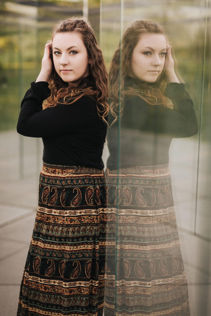 A simple spring portrait session of my friend Jenny outside the Nelson Atkins Museum of Art in Kansas City.