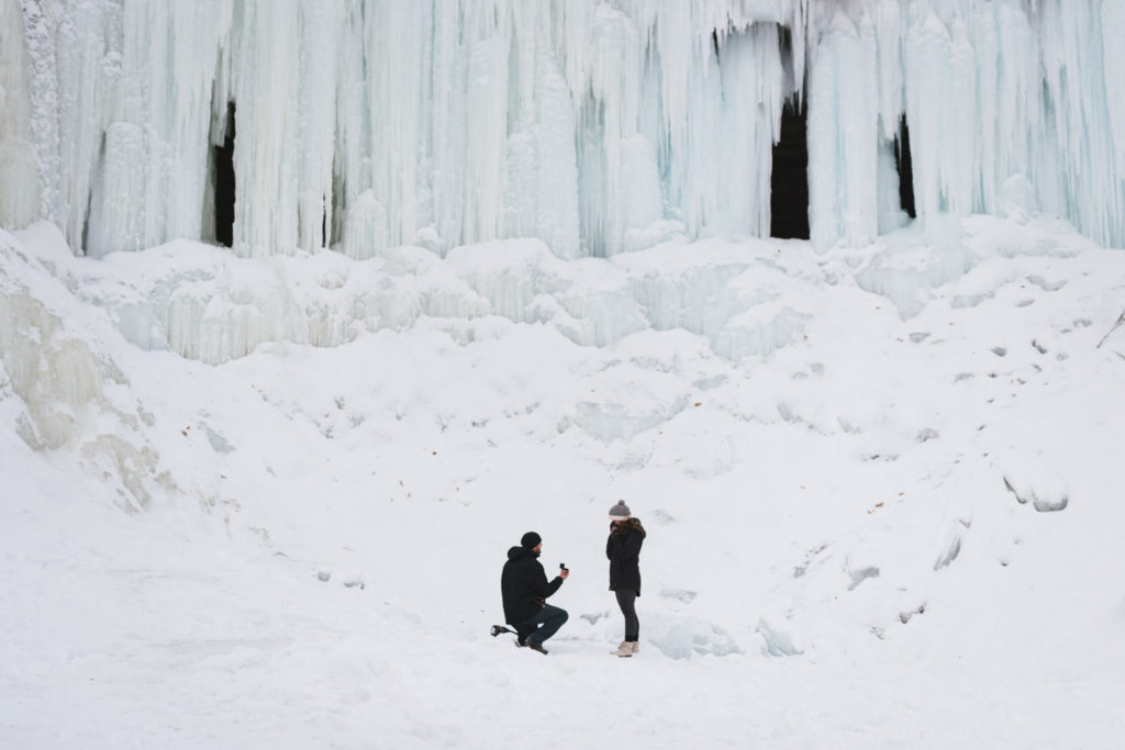 Jordan proposed to Amanda on the beautifully frozen Minnehaha waterfall in Minneapolis.