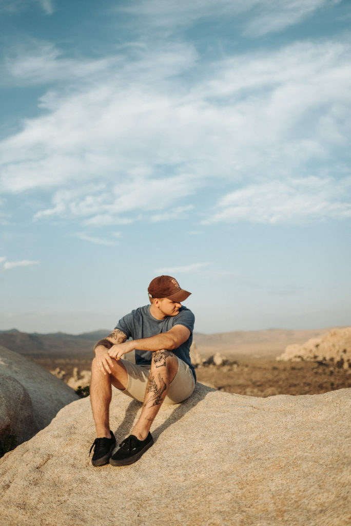 After the amazing game on the 11th was over, (we won!), we started our drive out to Joshua Tree. We arrived at our hotel around midnight or a little after, set our alarms for 4:30am, and quickly passed out. It was my idea to be out in Joshua Tree National Park for sunrise. Everyone else was on board, but when our alarms went off that early, it almost didn’t happen. Thankfully our friend Harrison jumped (more like crawled) out of bed, and said we’re doing this. We packed up, jumped in the car, and were on our way into the park. We were a little later than we had planned, but we still saw the beautiful sunrise as we were climbing our way up my favorite boulder. This was my third trip out to Joshua Tree, my third trip up that same boulder, and the third time that our incredible Earth took my breath away.