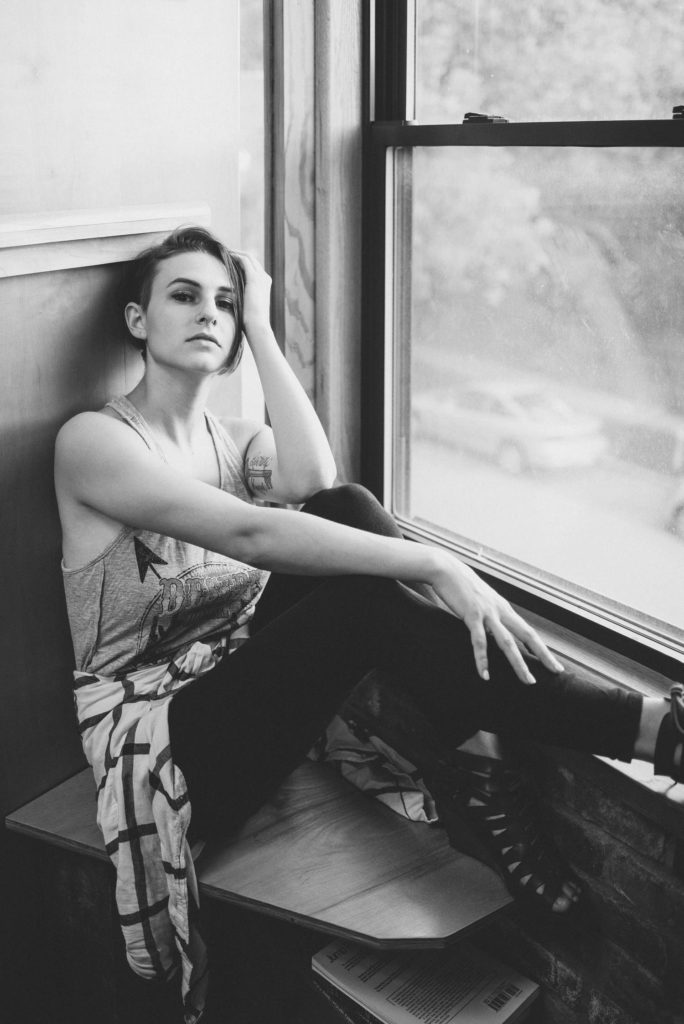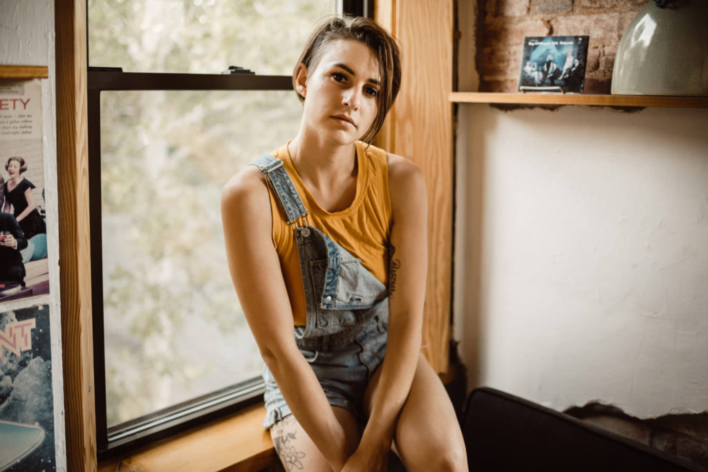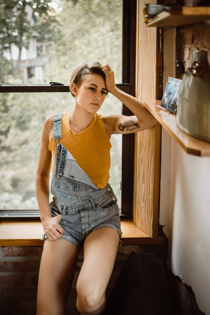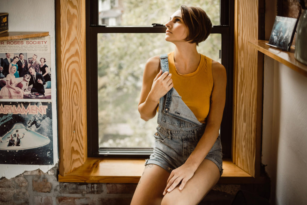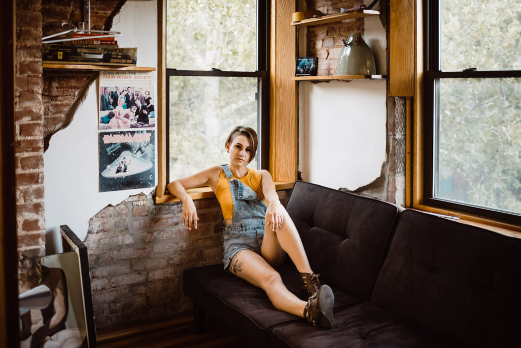 Prospero’s Books is this wonderful bookstore located in the Westport area of Kansas City, MO. It had an awesome old school vintage vibe on the main floor, with rolling ladders and all. The top floor feels like a cozy coffee shop, just currently without the coffee. A great place to work, read, listen to music, and of course, take photos. And then there’s the bottom floor, a basement turned into more space for even more books. Every little nook and cranny is filled to the brim with books. However, my favorite part is the unfinished wood beams throughout the basement, full of the musings of the store’s many patrons. I could get lost in this bookstore for hours. And I never would have discovered this gem without Kate recommending this as our photo shoot location!