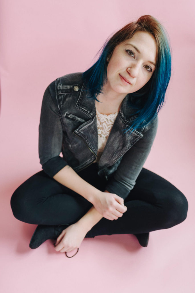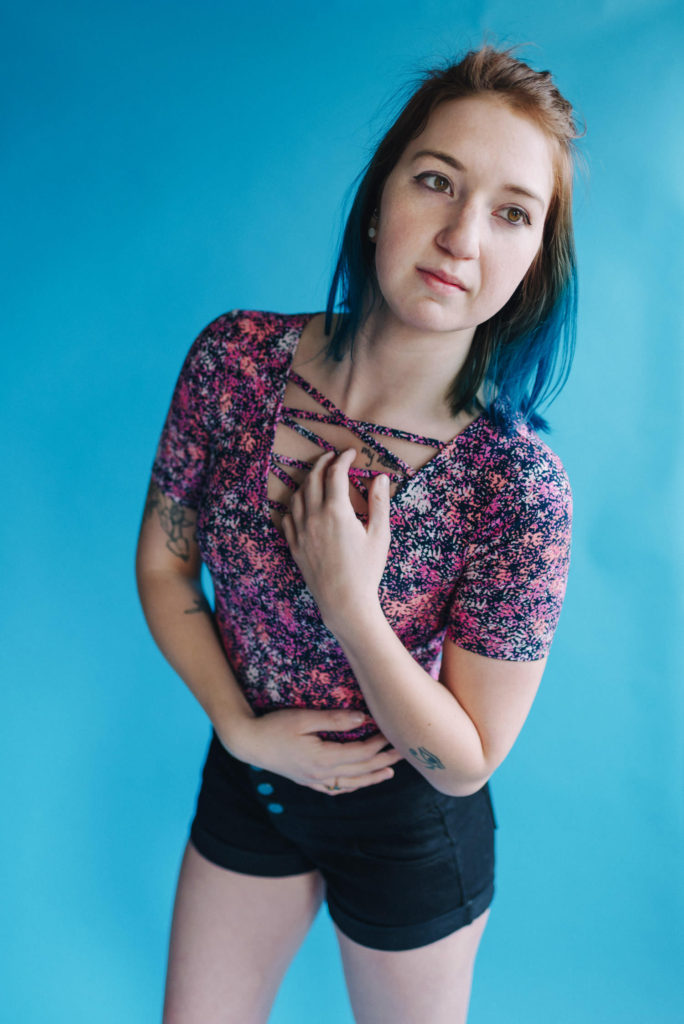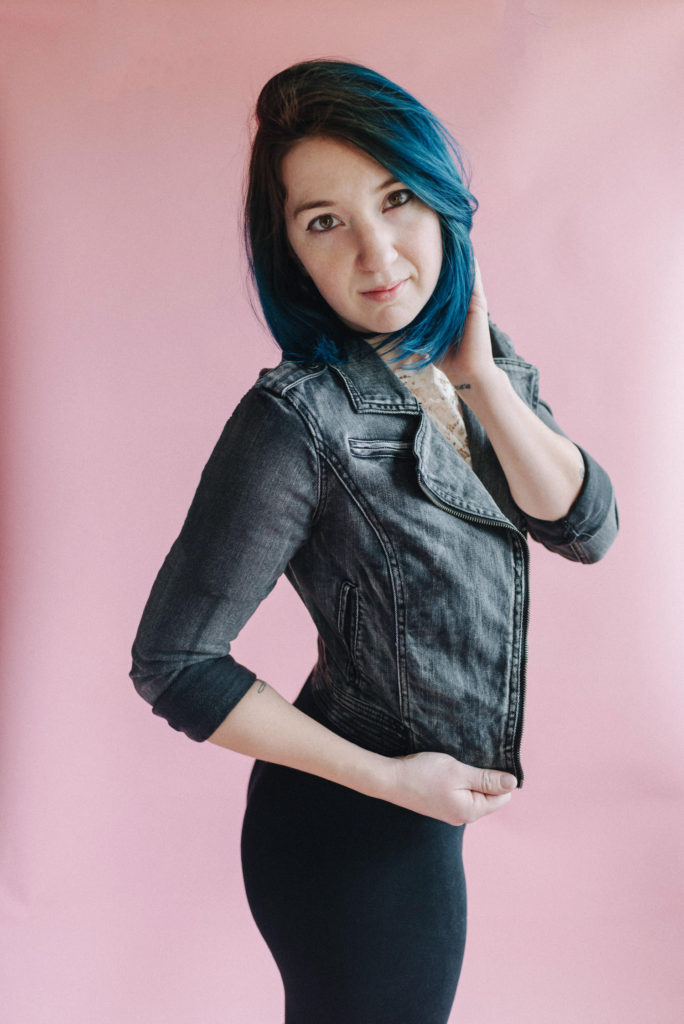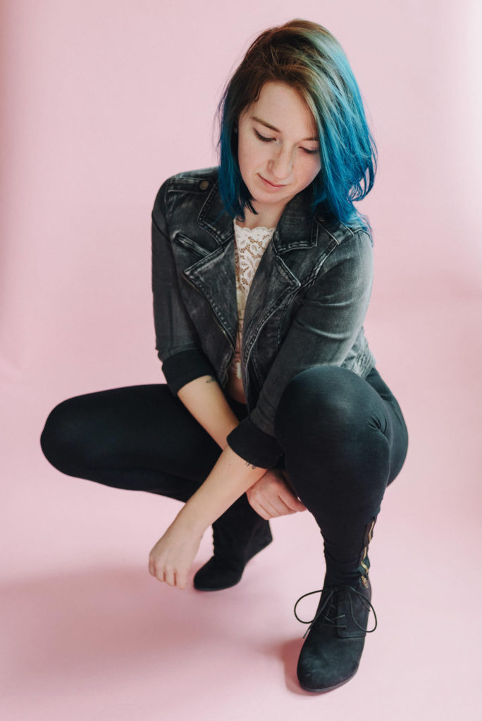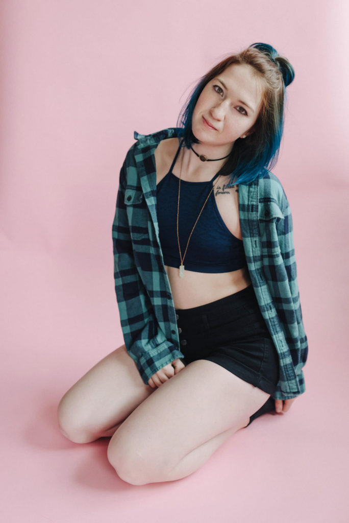 Kendra in my kitchen turned natural light studio.