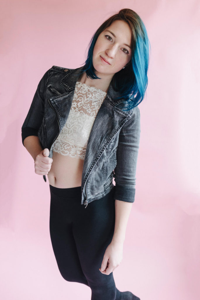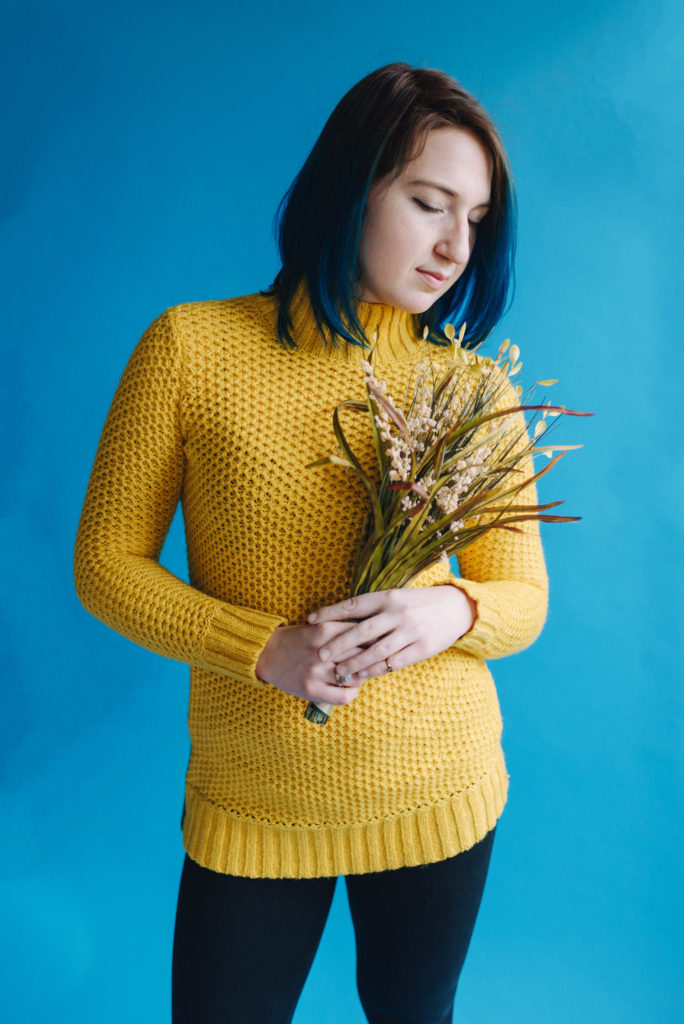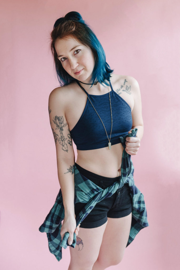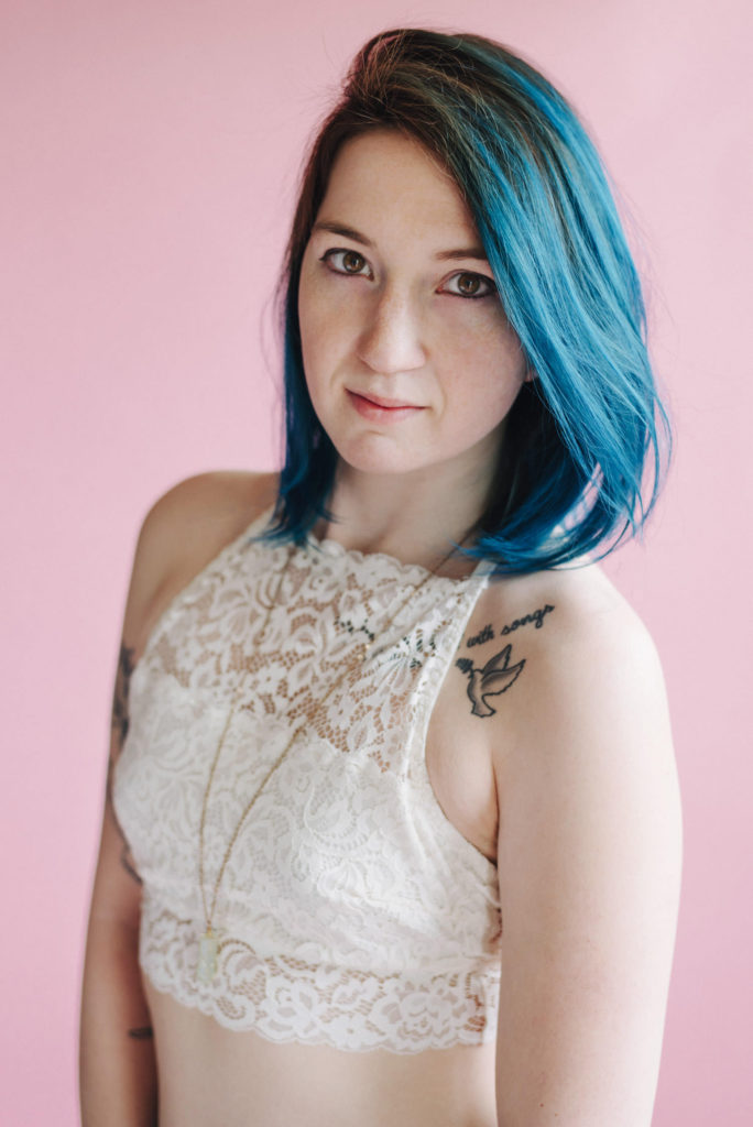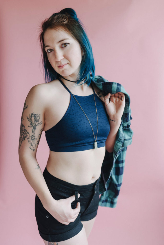 Kendra in my kitchen turned natural light studio.