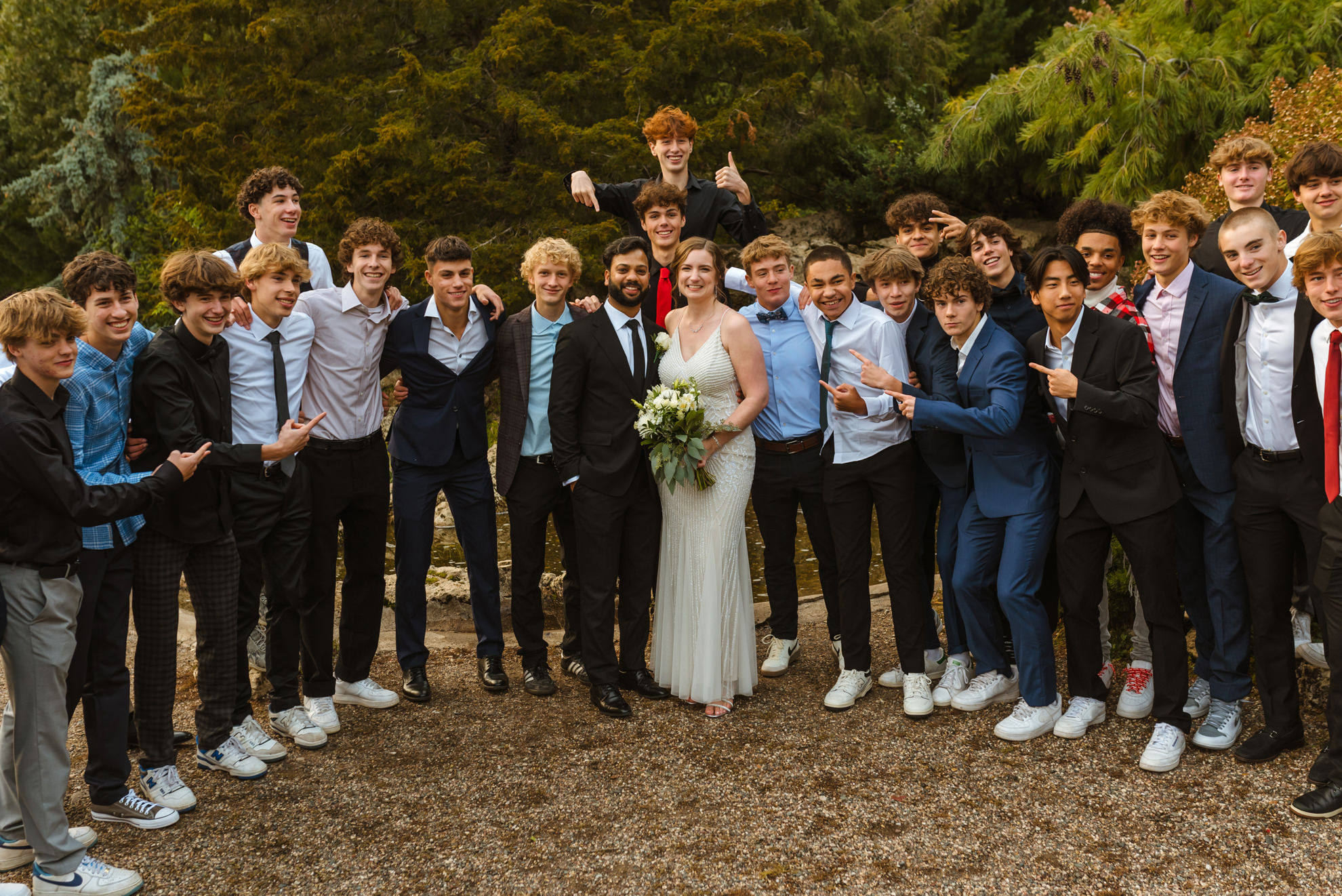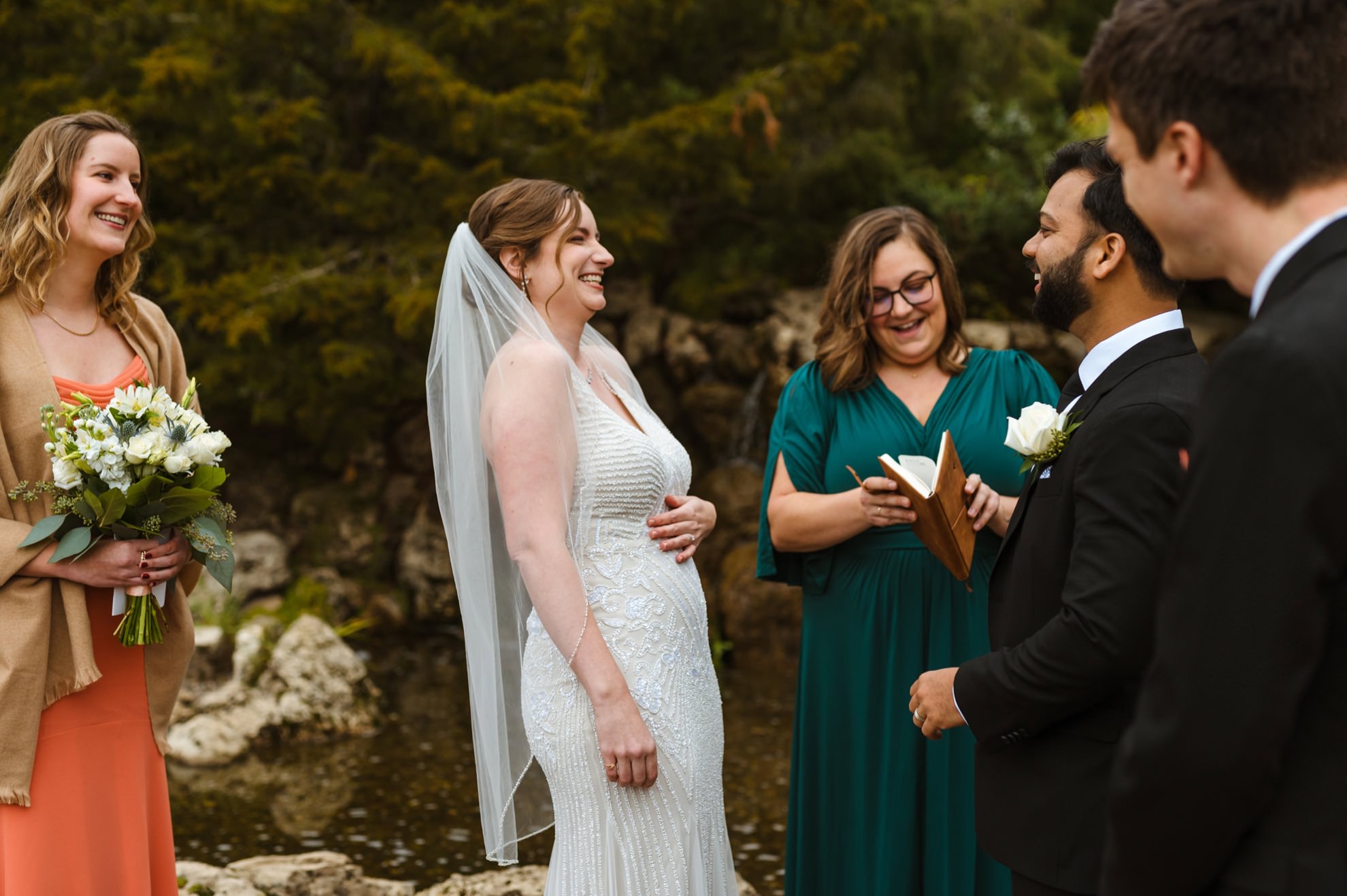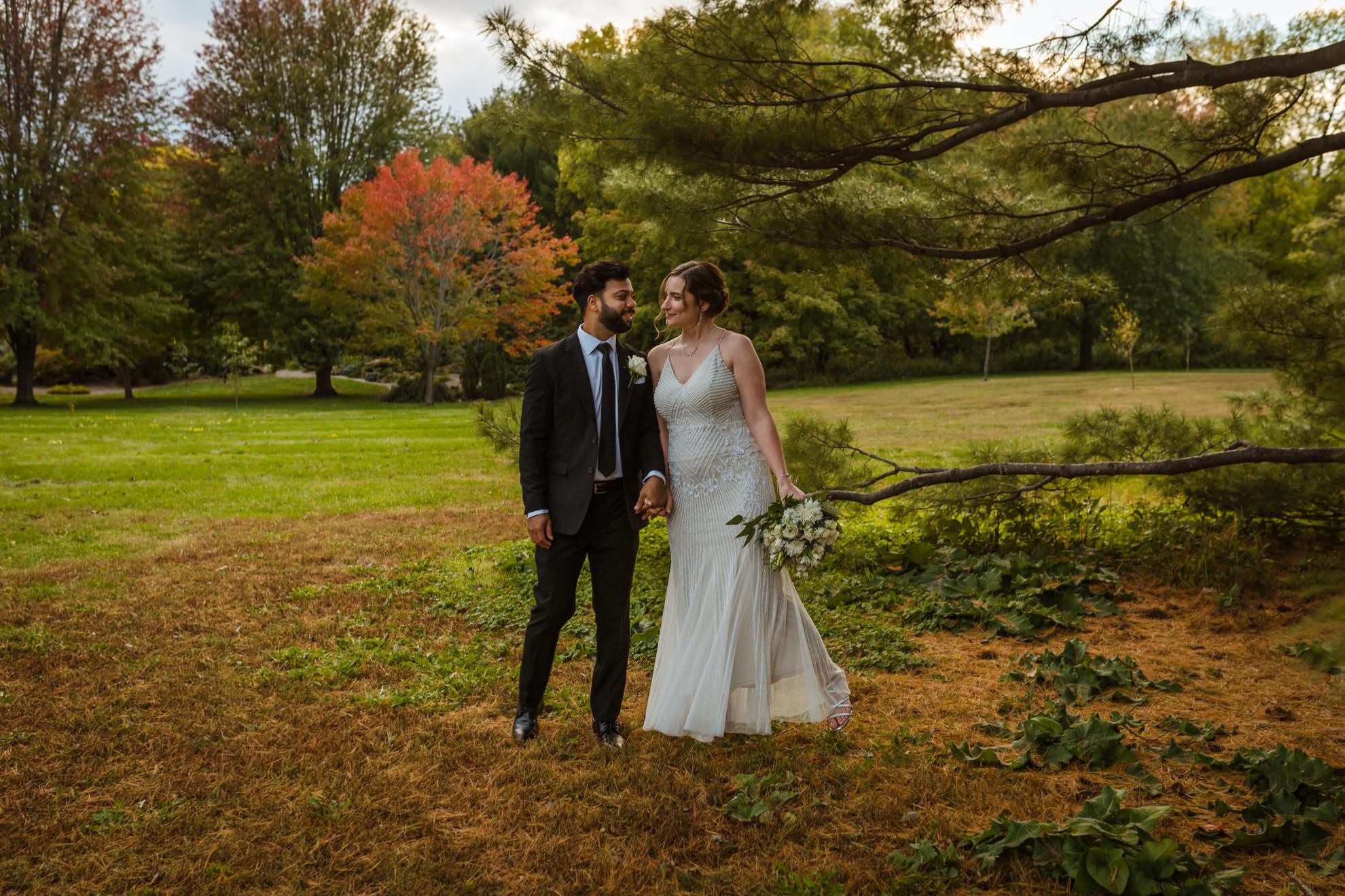 Yet, as with any carefully planned event, surprises awaited. Despite assurances that the park would be theirs alone, unexpected visitors emerged. The park, unbeknownst to them, had become an unofficial meetup location for a local high school’s homecoming photos. A growing crowd threatened to overshadow their intimate ceremony. Unfazed, Liz & Ankit embraced the unexpected, turning what could have been a hiccup into a funny twist in their love story.