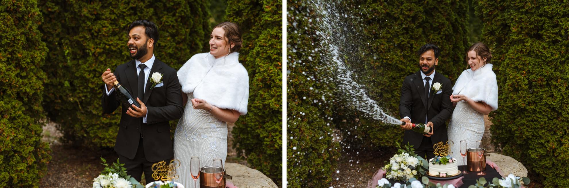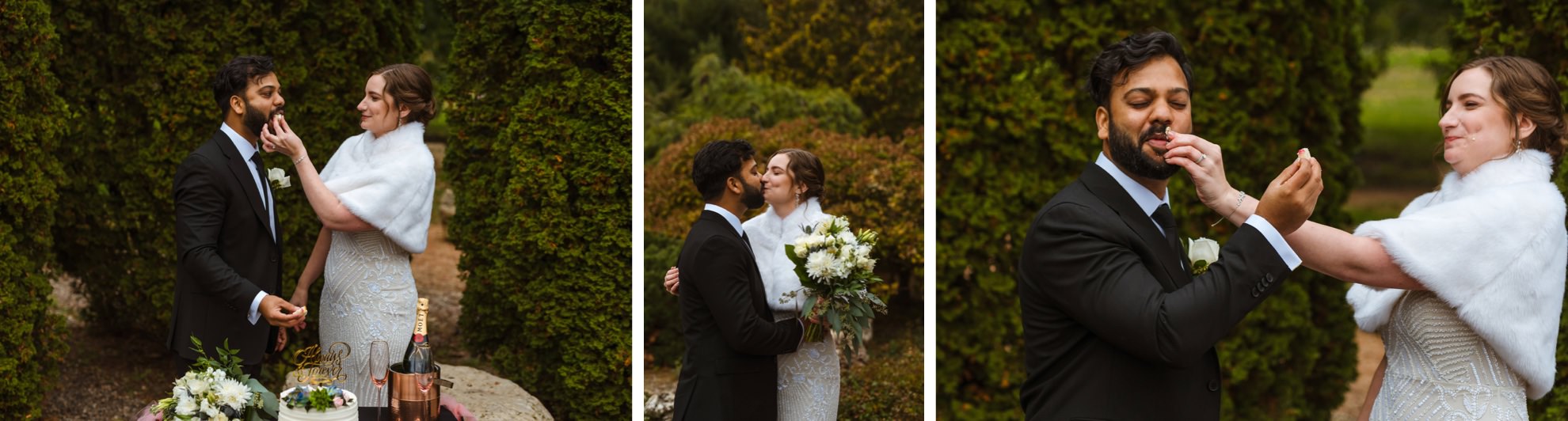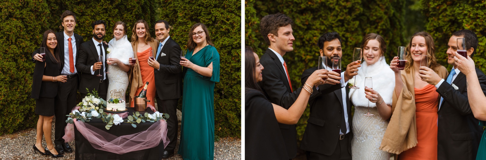 Liz & Ankit, gearing up for a big Indian wedding in a few months, decided to kick off their journey as a married couple with a small, meaningful ceremony among their closest friends. Picture this – a peaceful & beautiful garden with a quaint table nearby adorned with cake and champagne, ready to celebrate the signing of their marriage license.