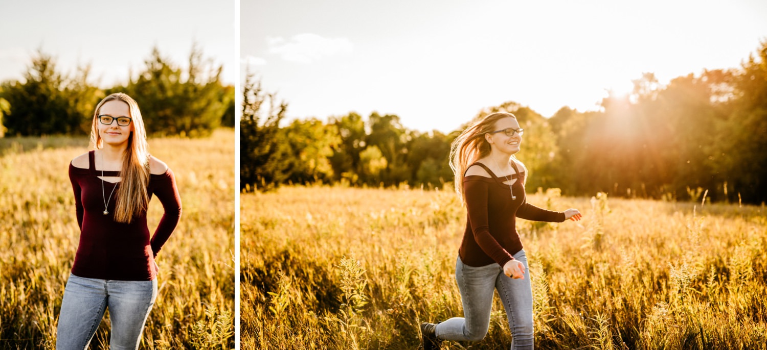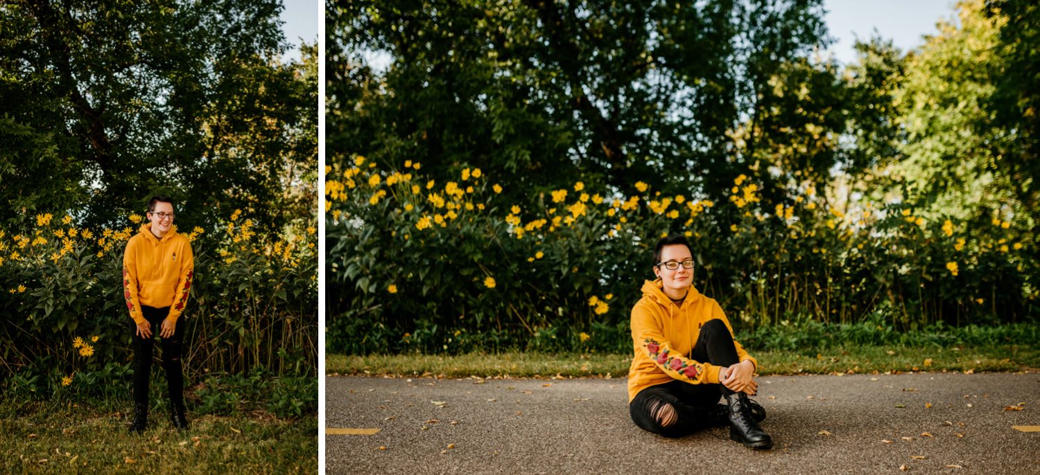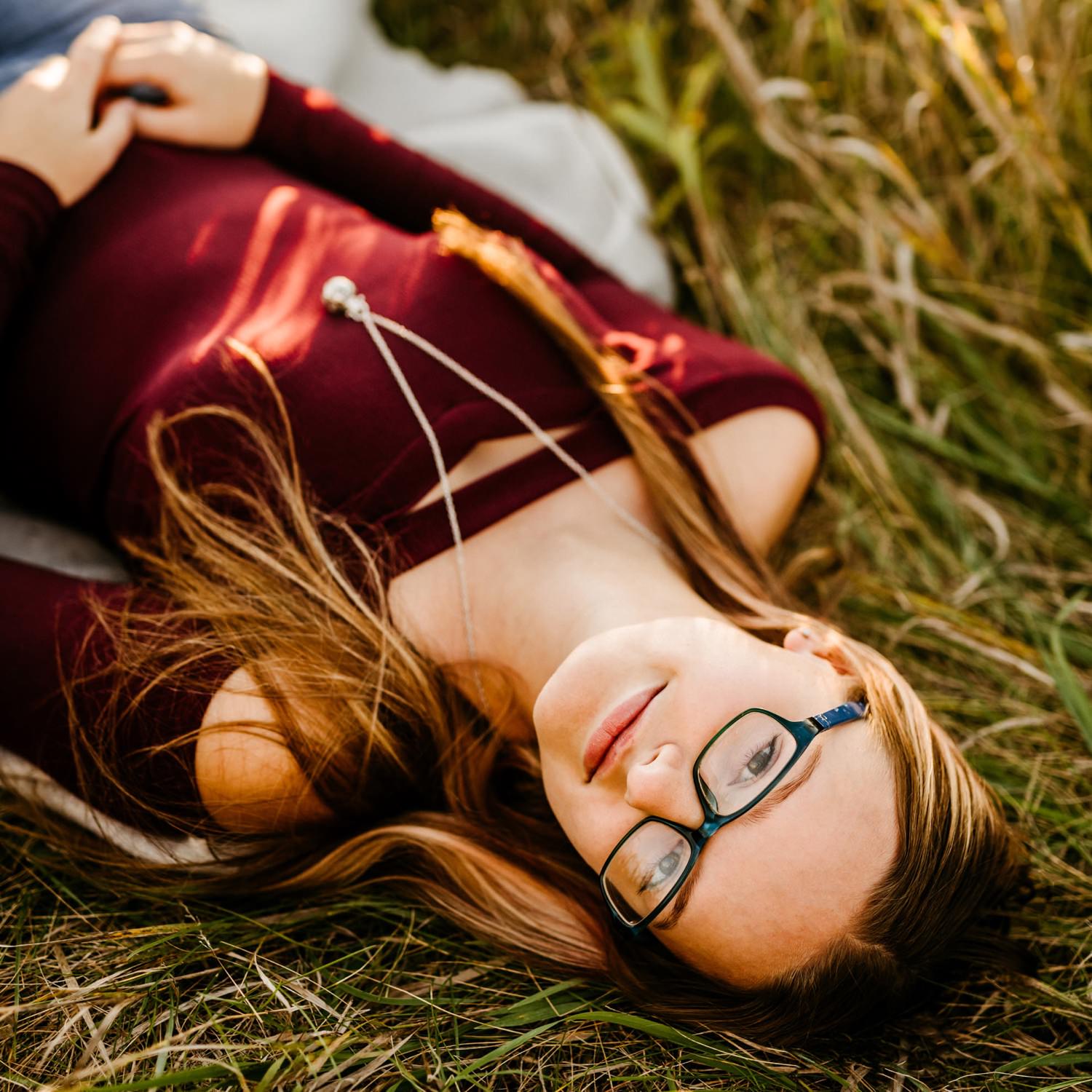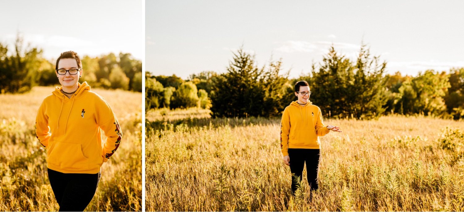 We started off the session in downtown Victoria, where I found this awesome ivy wall behind an apartment building along their parking lot. Pro tip: you can find the best locations in the most unexpected of places! Just across the street was a walking trail with beautiful yellow flowers beside it, and a nice view of the lake further down. From there we drove over to the Carver Park Reserve where I had found a wonderful field to shoot in, again right alongside a parking lot for a local campsite. You don’t have to go far to get great pictures!