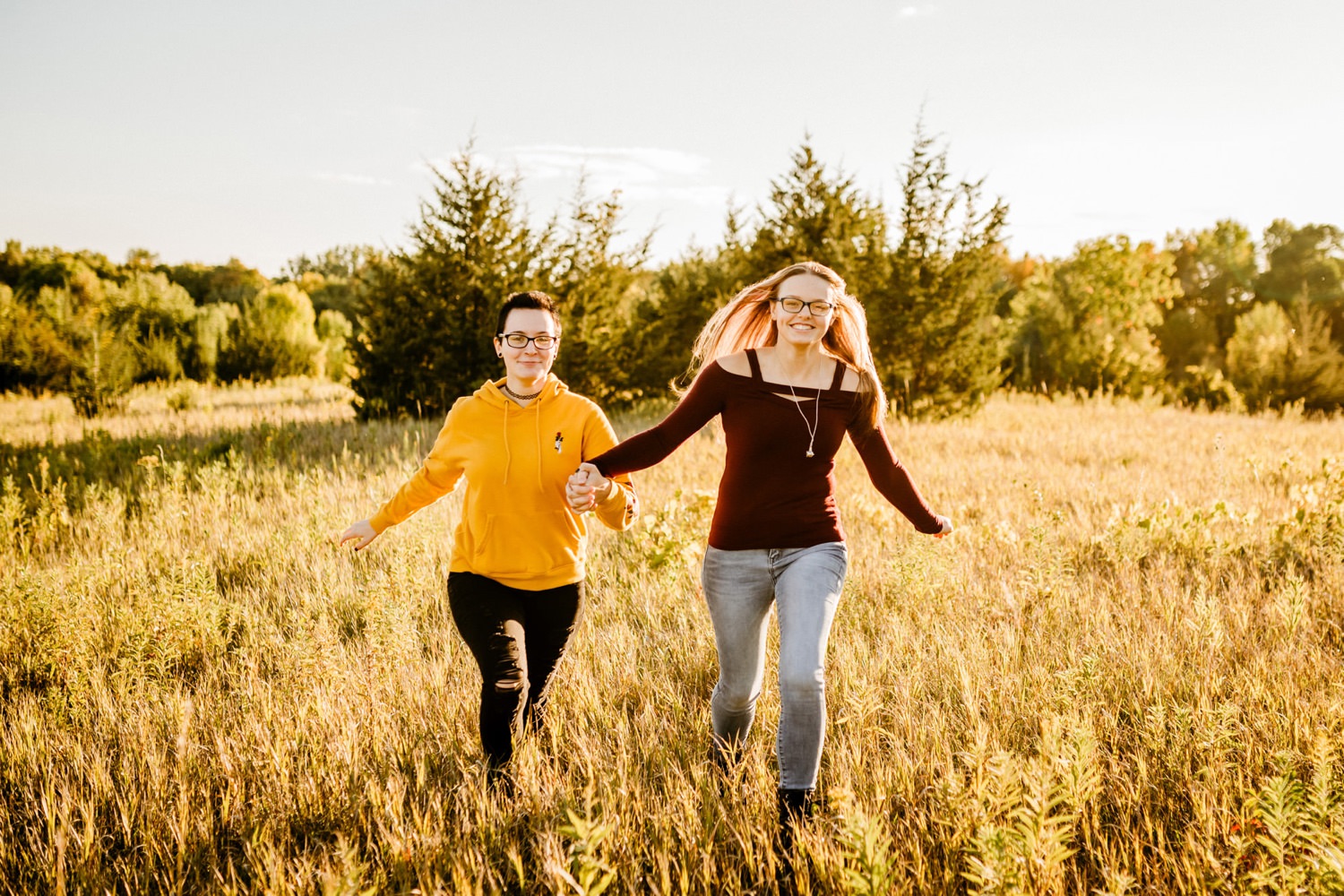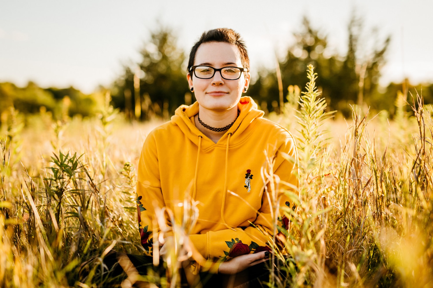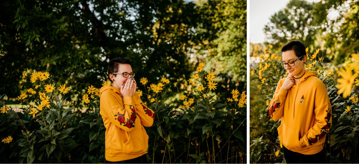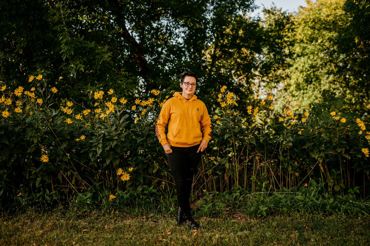 We started off the session in downtown Victoria, where I found this awesome ivy wall behind an apartment building along their parking lot. Pro tip: you can find the best locations in the most unexpected of places! Just across the street was a walking trail with beautiful yellow flowers beside it, and a nice view of the lake further down. From there we drove over to the Carver Park Reserve where I had found a wonderful field to shoot in, again right alongside a parking lot for a local campsite. You don’t have to go far to get great pictures!