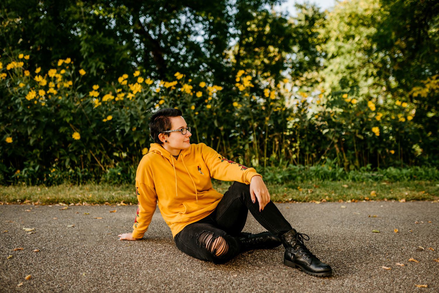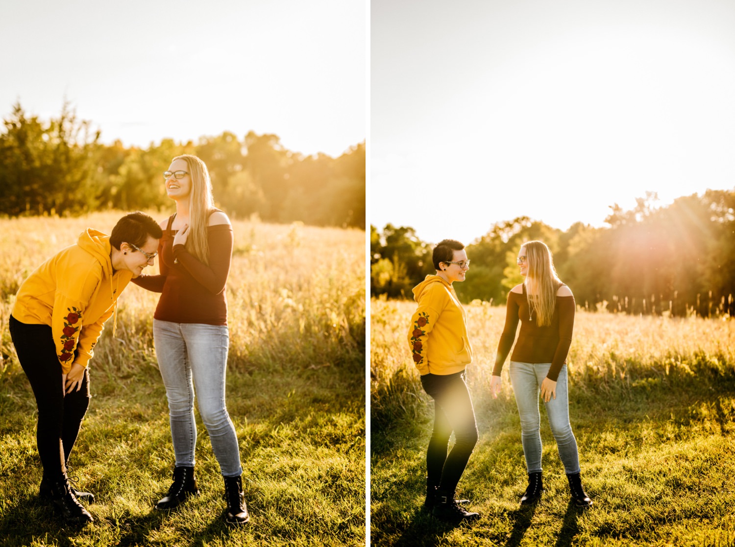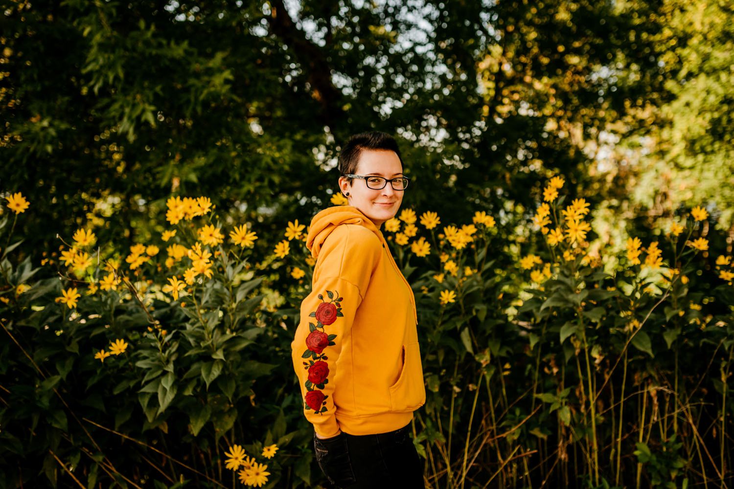 We started off the session in downtown Victoria, where I found this awesome ivy wall behind an apartment building along their parking lot. Pro tip: you can find the best locations in the most unexpected of places! Just across the street was a walking trail with beautiful yellow flowers beside it, and a nice view of the lake further down. From there we drove over to the Carver Park Reserve where I had found a wonderful field to shoot in, again right alongside a parking lot for a local campsite. You don’t have to go far to get great pictures!